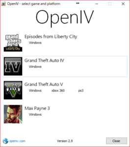 - OpenIVを起動し、「GTA5-Windows」を選択する