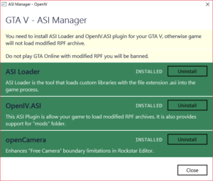 - OpenIV.ASI:GTA5でOpenIVの機能をすべて有効にするためのファイルです。