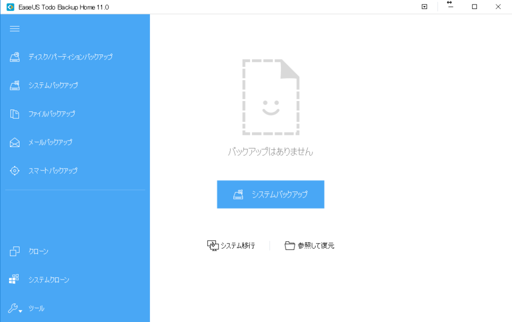 EaseUS Todo Buckupを起動するとこのようなメイン画面が現れます。